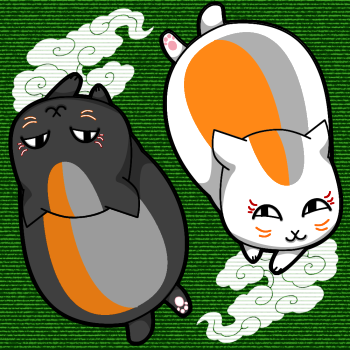 ←これはこの作品を勧めてくれた友に捧げた(強引に押しつけたとも言います;)残暑見舞いの漫画版本物のニャンコ先生&偽の黒ニャンコ先生(黒にゃん、カラーの資料が手元にないのでカラーリングを激しく間違えている可能性大です;)・・のつもり。